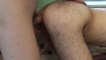 Playing with his hole then feeding him