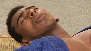 They're master told them to warm up before the next session. Andre asked Manuel if he wanted to learn how to do a chokehold. When it was his turn to try, Andre could feel Manuel's hard dick underneath his gi. A workout ensues.